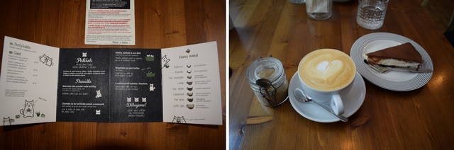 Po výstavě jsme se vydali do Pelíšku, do kočičí kavárny. Vzpomněla jsem si, že barras přispěla na tuto kavárnu, tak jsem tam šla hledat její místo na židli - ba ne, jela jsem si dát dobré kafe a podívat se na kočky.