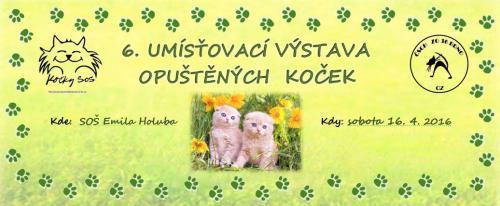 | Popis | Milí naši příznivci, přátelé a sponzoři! Zveme Vás všechny na naši VI. umísťovací výstavu opuštěných koček, která se bude konat v sobotu 16.4.2016 v Brně. Přijďte si vybrat kočičku nebo pokud už nějakou máte, tak jí vyberete kočičího kamaráda. Budeme tady mít také náš charitativní krámek, můžete zde zakoupit pelíšky pro kočky, hračky, hrníčky, šperky a další pěkné věci a přispějete tak na opuštěné kočky. |