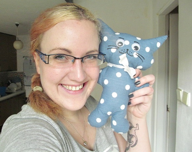 Jedny boty ale byly málo. Původně jsem si říkala, že utratím maličko, ale... Chytla mě vášeň pro kočičí věci a já si ulovila ještě šitého modrého kocouře (80,-).