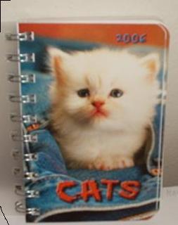Popis: Kalendářík s koťátky, praktický pomocník v plánování v roce 2006. Každý měsíc jedno roztomilé koťátko. Získán darem od tety Olivky.
