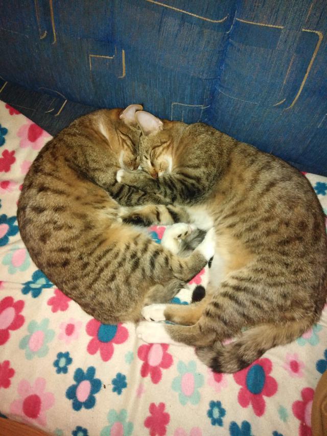 Matěj a jeho bratr Darren byli moji druzí kocouři. Byli bratři, nerozluční kamarádi. Fotka tady to dokládá. Darren byl trošku větší než Matěj, ale měl svého malého brášku moc rád. Spali spolu na židli a vyskakovali na sebe zpoza keřů, když to byly ještě malé huňaté kuličky. Ale jednou vyrazili Darren s Matějem ven, jak se obvykle toulali skoro každou noc. Matěj se pak ráno vrátil bez Darrena. Darren se pak už neukázal. Matěj potom dlouhou dobu trávil noci s námi doma. Potom vždycky chodil ven tak na půl hodiny a pak se zase vracel. Docela dlouho mu trvalo, než zase začal trávit noci venku a vracet se ve tři ráno na jídlo. Docela dlouho jsem si říkala, že se Darren třeba odstěhoval, nebo se z něj stala toulavá kočka. Jenže jednou nám jedna paní, od které mám svého psa Borečka (který, ač je to jakkoliv k neuvěření, má kočky taky velmi rád), řekla, že u silnice viděla přejetou kočku, kočku podobnou našemu zatoulanému Darrenovi. Po tomhle zjištění se mi pořád chtělo tvrdit, že to ta paní nemohla vědět jistě a třeba si ho s někým spletla. Ale už nikdy jsem si nemohla tak úplně jistě namlouvat, že Darren ještě někde s radostí a nadšením lovce chytá myši. Nikdo z nás nikdy nezapomeneme. Darrene.