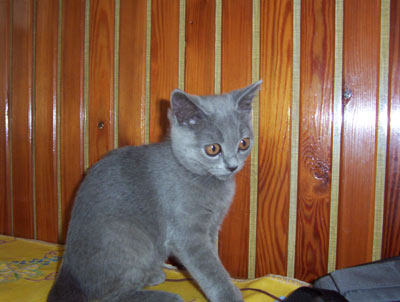 Když někdo sedí na pohovce Theoš vleze dovnitř a tam škrábe a trhá výplň pohovky. Ve čtyřech měsících vážil 2,5 kg. Je to náš kocouří rošťák. Své jméno získal po dědovi, který váží 8 - 9 kg.