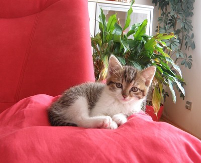 Panička si se mnou k sousedům chodila hrát od narození a byl jsem její oblíbenec. O druhé kočce neuvažovali. V pátek 20.6., kdy si můj bráška balil batůžek a odcházel ke své nové paničce, jsem na moji paničku házel taková prosebná očička, že neodolala, dala mě pod bundu a odhodlaně vyrazila k domovu. 0,5 km mě utěšovala, že to nějak zvládneme. Tedy přesněji řečeno, že to vydýchá můj starší brácha Fousek. Zatím se se mnou smiřuje, ale velmi nerad......