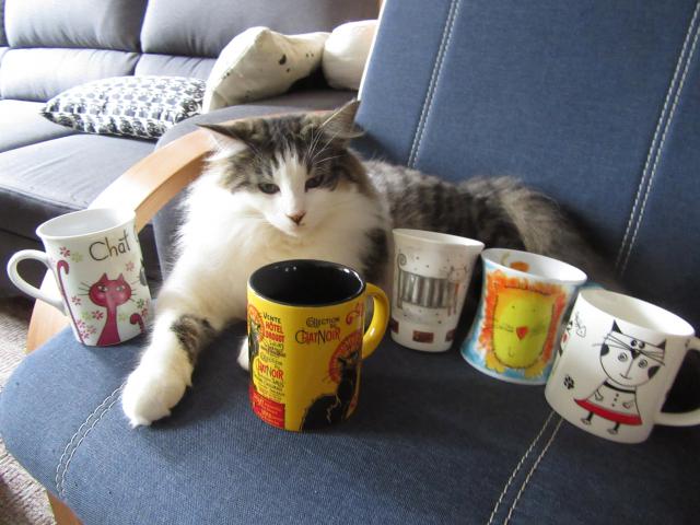väčšina hrnčekov doma je s mačkou...aj plecháčik do lesa je mačkový :-) takže hej, káva aj čaj z mačkohrnčeka