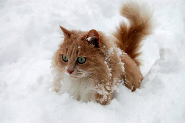 To jsou odvážné kočičky, že lezou do sněhu! Já (aby se neřeklo)do té studené hromady sice vlezu, ale fofrem běžím ven a do tepla. Takže nejdelší trasa mé cesty sněhem byla asi 3 metry! (Ještě, že jsem si našla domov před zimou! A mám ho už dva roky- sláva!!!!!!!!)