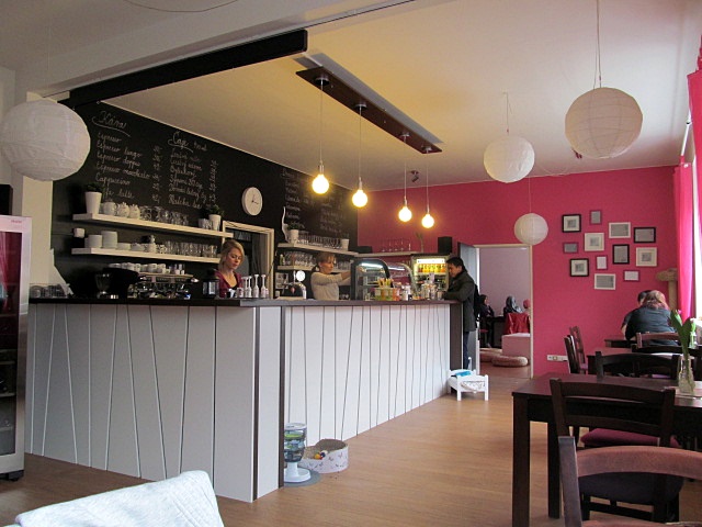 Když jsem vešla, uhodila mě do očí růžová. Kavárna vypadá od pohledu moderně a bude ideální pro toho, kdo má rád opravdu klasický styl kaváren (aspoň takto si ho já představuju).