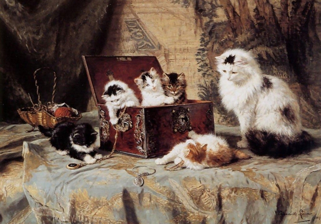 V článku s názvem Revisiting the 19th Century’s Cat-Painting Renaissance (Price: $15,000 — LOL!) na Vulture (4. 5. 2015) zjistíte, že obrázky koček tady byly pořád. Podle Madaliny Lazenové z aukční síně Bonhams, specialistky na na malby z 19. století, byly obrazy pro tehdejší lidi tím, čím je pro nás dnes internet. Před nástupem masmédií bylo umění způsobem, jak šířit informace a obrazy z míst, které by byly jinak nedostupné. A stejně jako na dnešním internetu, všudypřítomné byly zábavné obrazy koček.