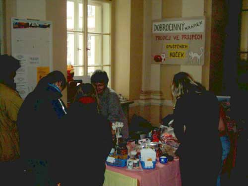 14. prosince 2003 od 10.00 do 17.00Přírodovědecká fakulta UK, Albertov, Praha ![]() Takhle to vypadá na výstavě z druhé strany ![]() Dobročinný krámek, kde se prodávaly různosti na pomoc útulkům ![]() První kočička našla domov (11:39) ![]() Tina si povídá s dalším zájemcem o koťátko ![]() Dopoledne bylo narváno ![]() Vybrala se spousta konzerv... ![]() Poslední kocourek ![]() Poslední kocourek podruhé ![]() Šťastná kočička i nová majitelka